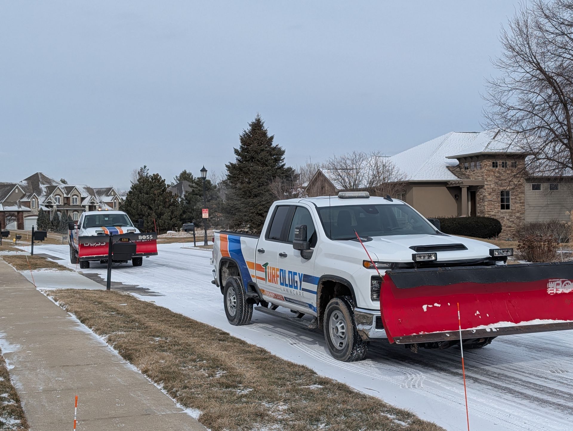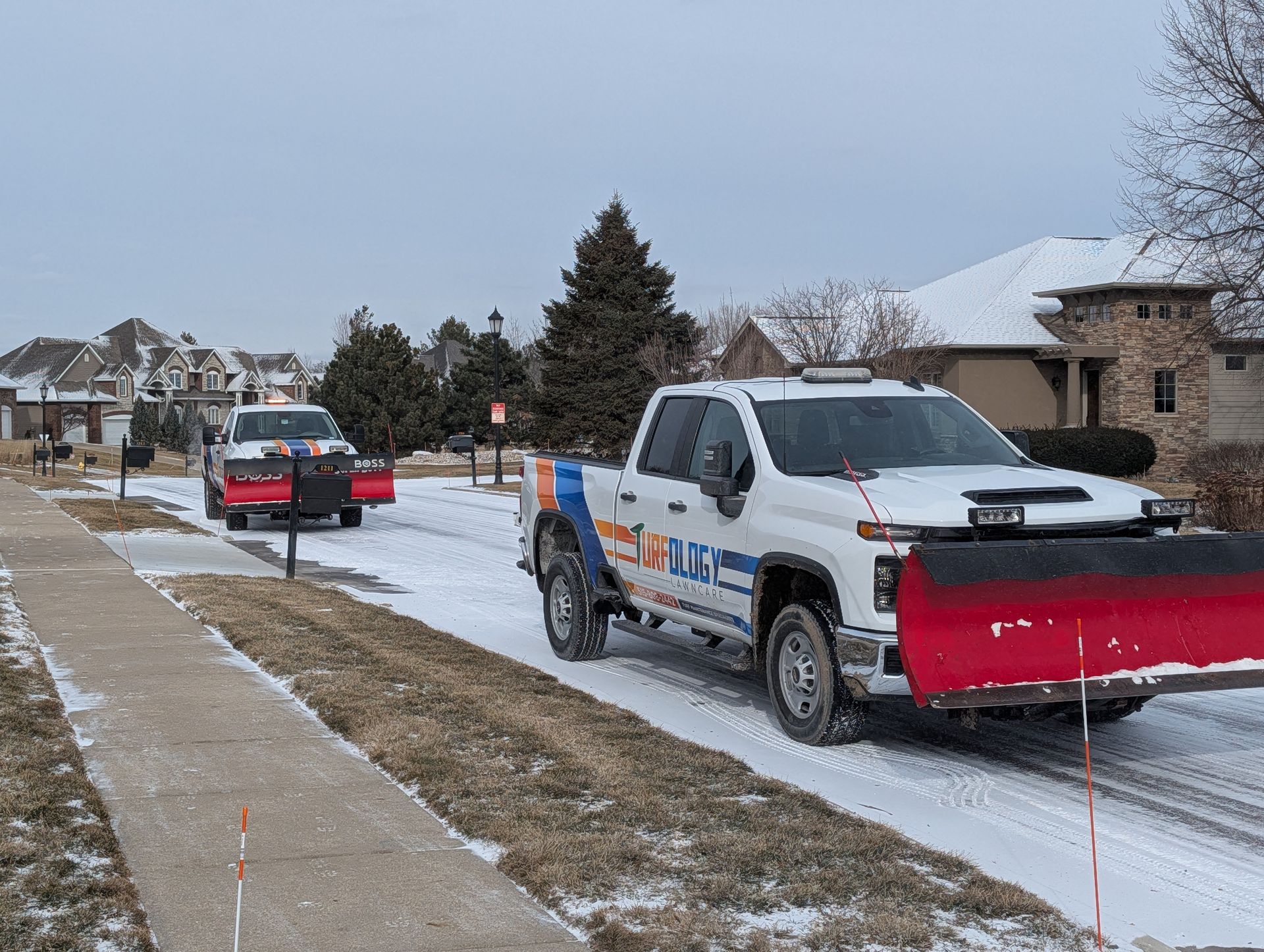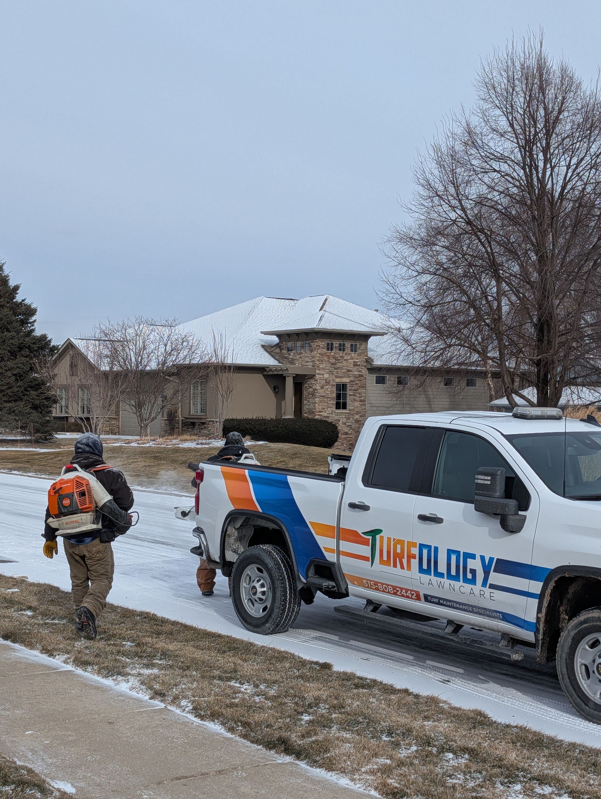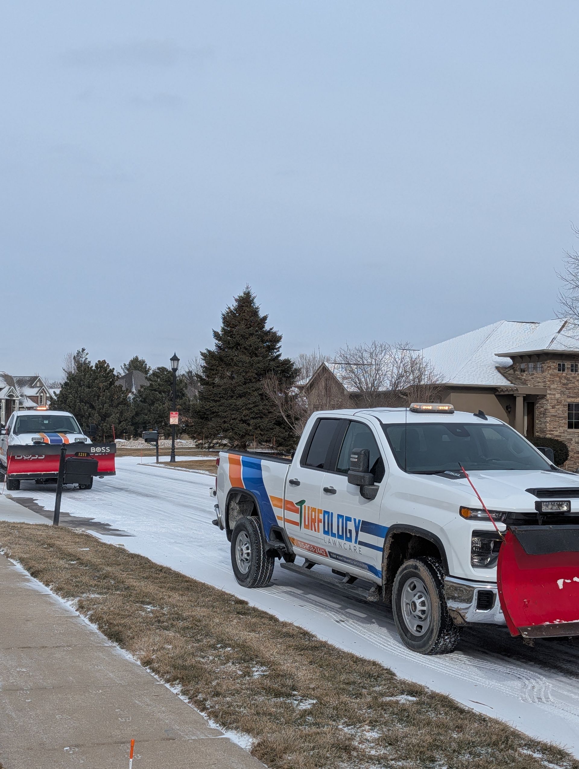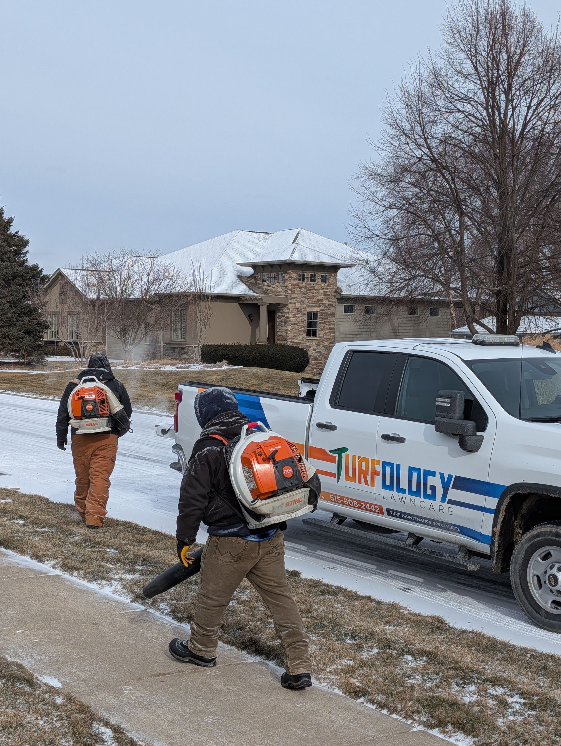Make winter manageable with Turfology’s residential snow removal services in the West Des Moines area. Our comprehensive approach includes plowing, blowing, shoveling, and deicing to keep your driveways, sidewalks, walkways, and other critical areas at your home clear and safe throughout the season. Tired of battling heavy snow and icy conditions? Trust our experienced team to handle the toughest winter weather so you can enjoy safety and peace of mind.
